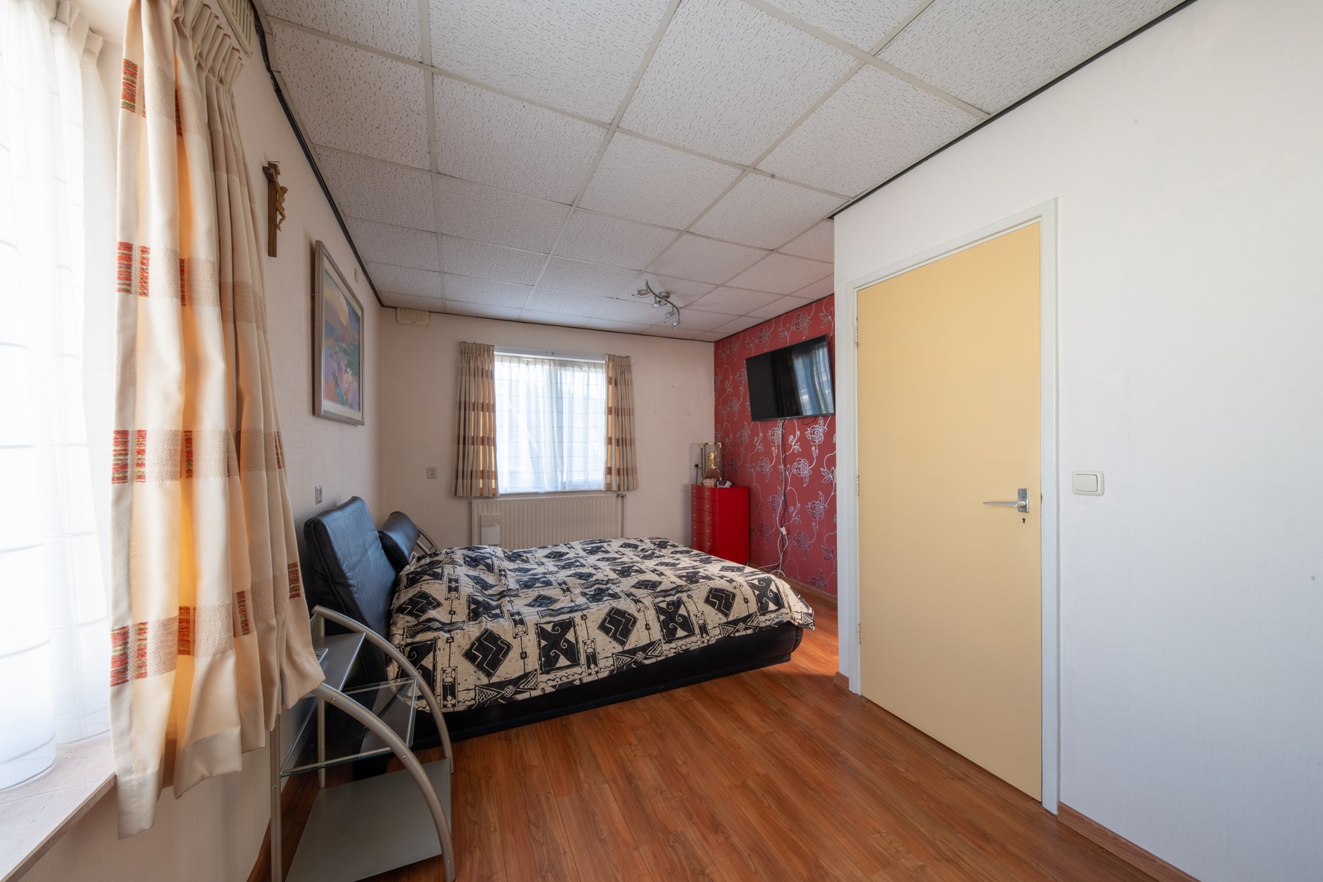De verdieping bestaat uit een overloop, vier slaapkamers, een nette gemoderniseerde badkamer en een woonkamer met open keuken.