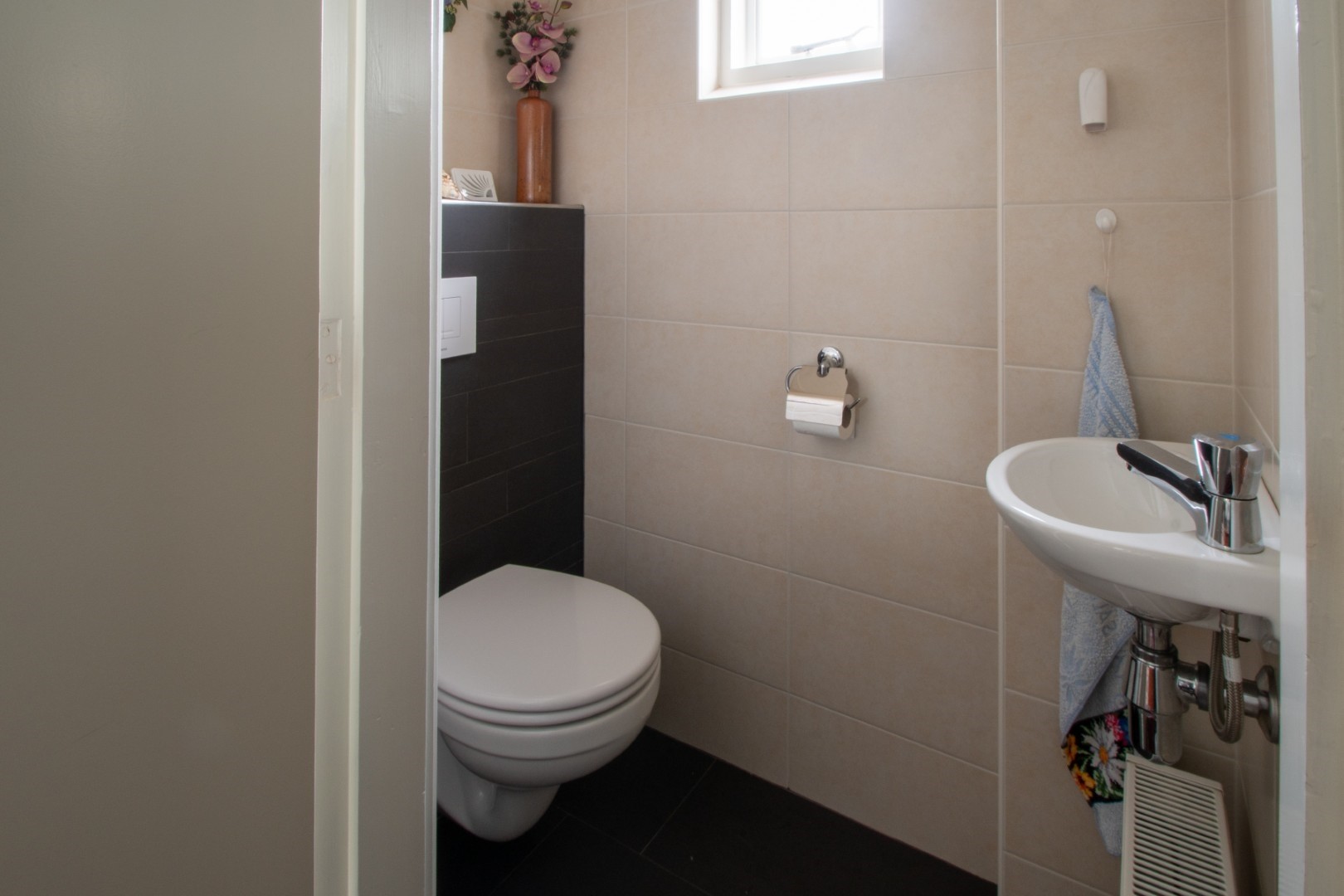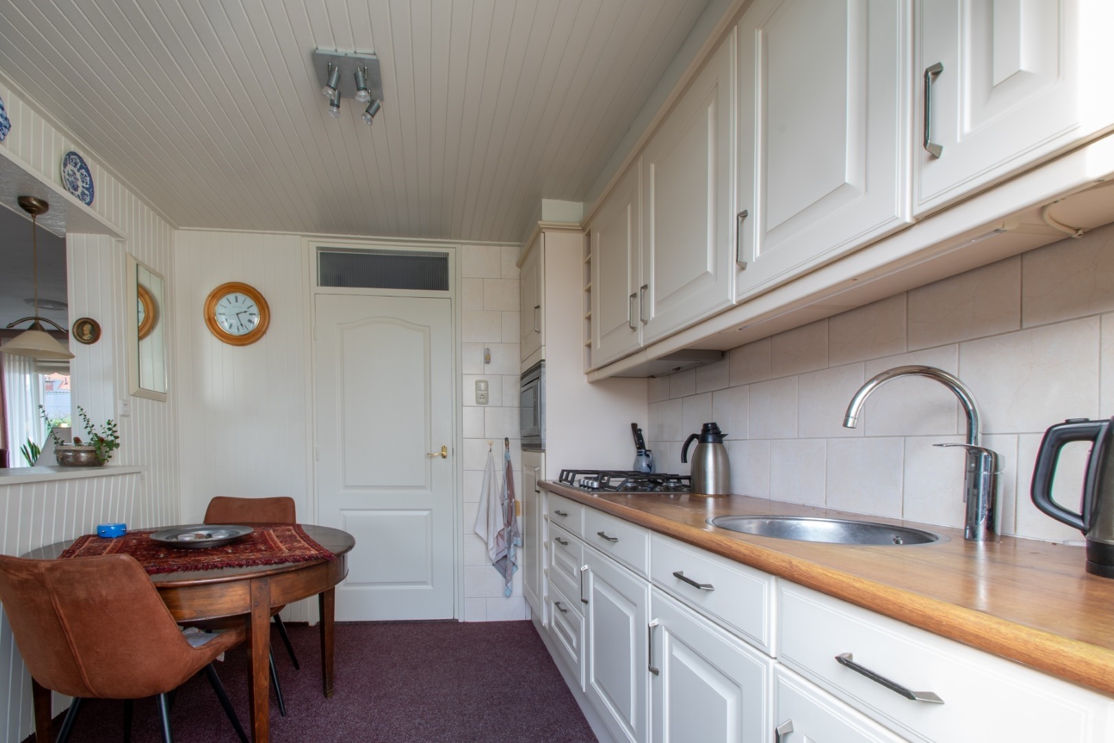 Via de entree kom je in de hal met toilet en de trap naar de eerste verdieping. Vanuit de hal is de keuken bereikbaar. Deze halfopen keuken is praktisch ingericht en voorzien van een gaskookplaat, afzuigkap, koelkast en magnetron. Daarnaast is er een close-in boiler aanwezig voor extra warm water in de keuken. Vanuit de keuken loop je door naar de woonkamer. Dit is een lichte ruimte met een prettige indeling en genoeg mogelijkheden om er stap voor stap een eigen plek van te maken. Vanuit de keuken is er ook direct toegang tot de tuin, waardoor je gemakkelijk naar buiten loopt.