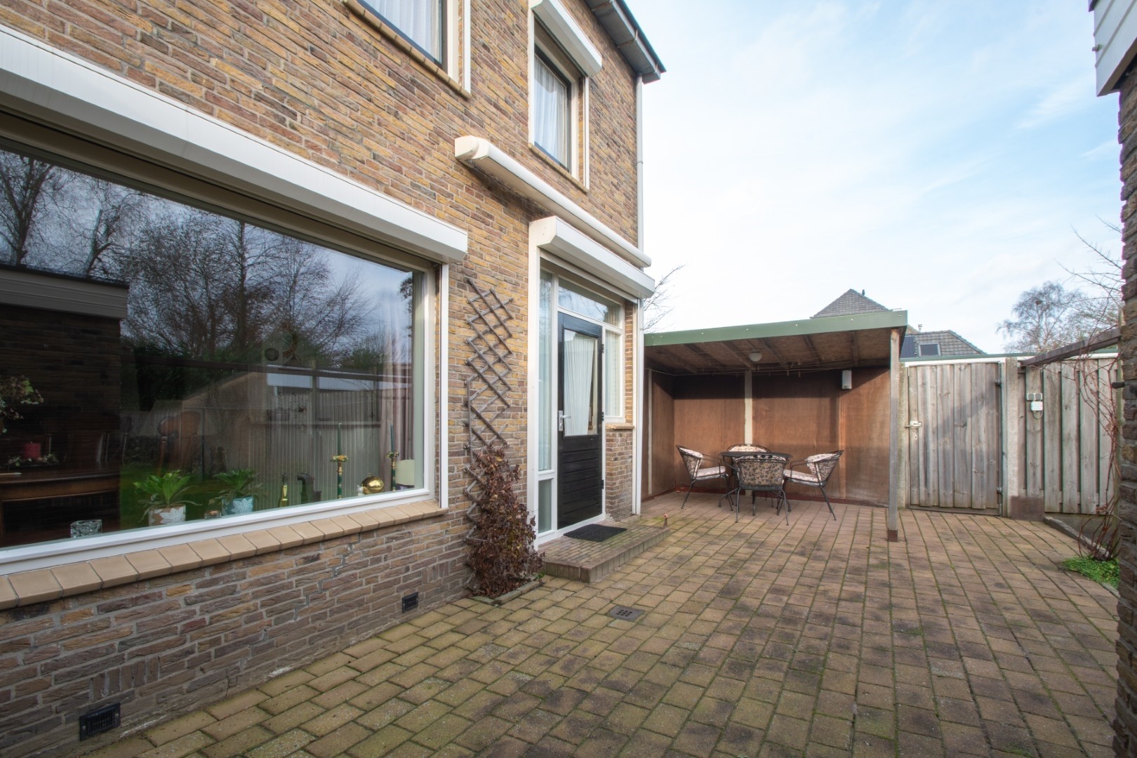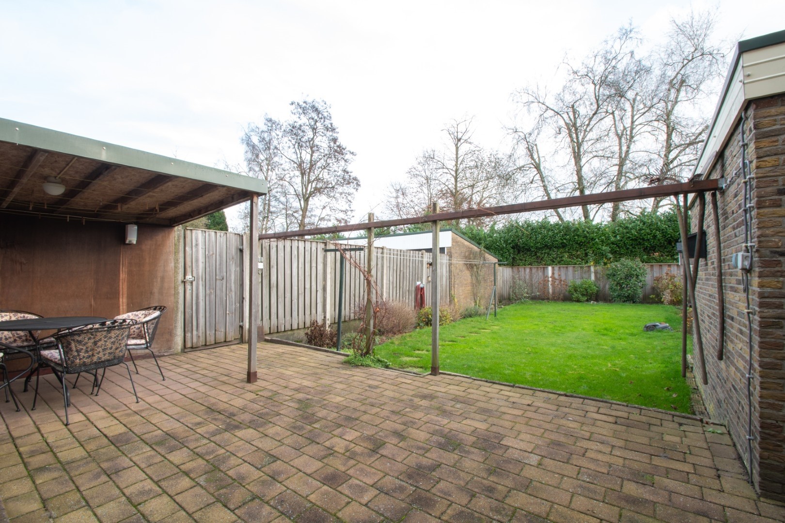 De achtertuin is diep en biedt volop ruimte om verschillende zitplekken te creëren, te tuinieren of gewoon buiten te zijn. Door de diepte van de tuin is er altijd wel een plek in de zon of juist in de schaduw te vinden. Achter in de tuin staat een berging, waar de wasmachine en droger zijn opgesteld. Een praktische ruimte die zorgt voor extra bergruimte en gemak.