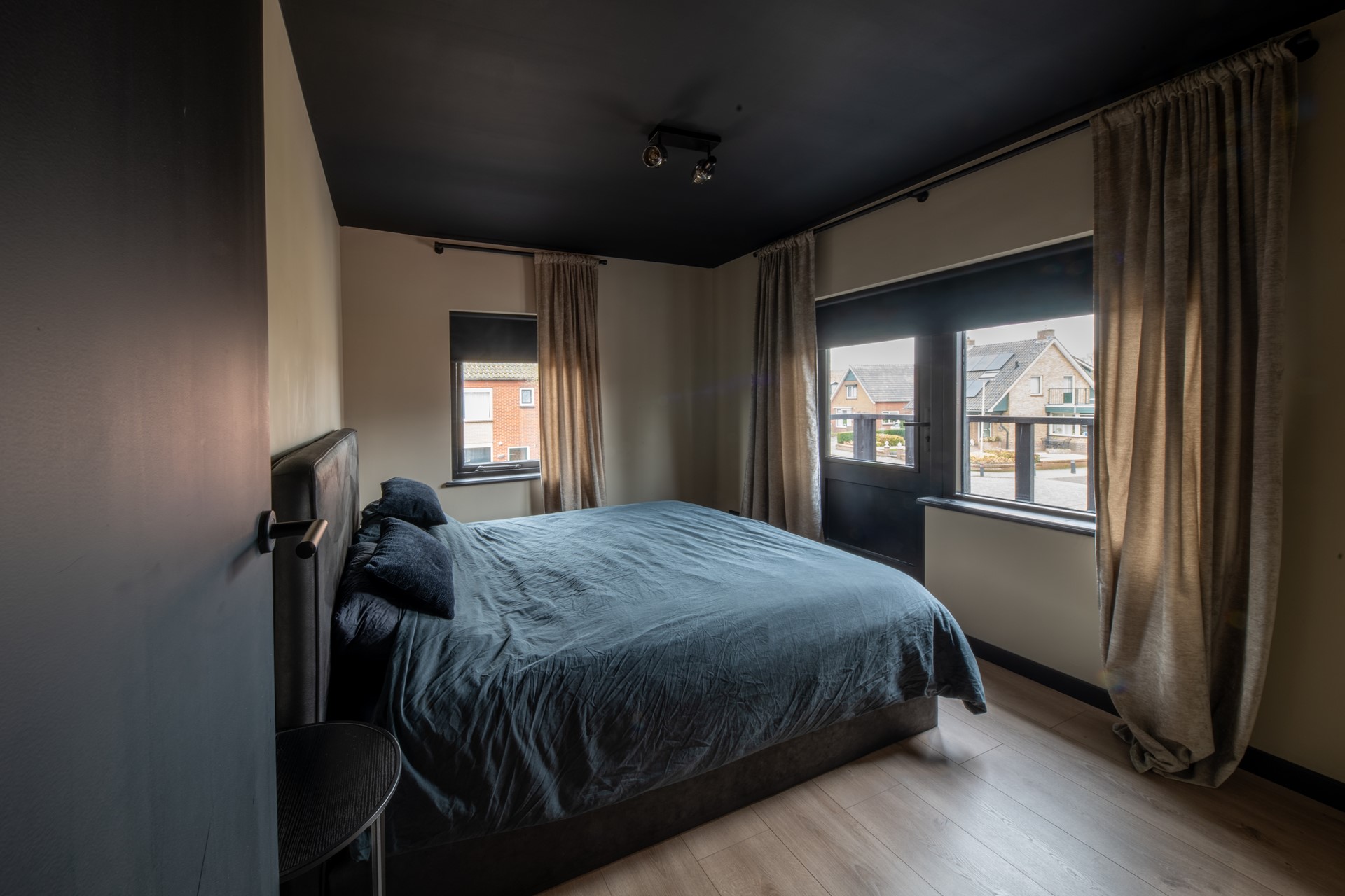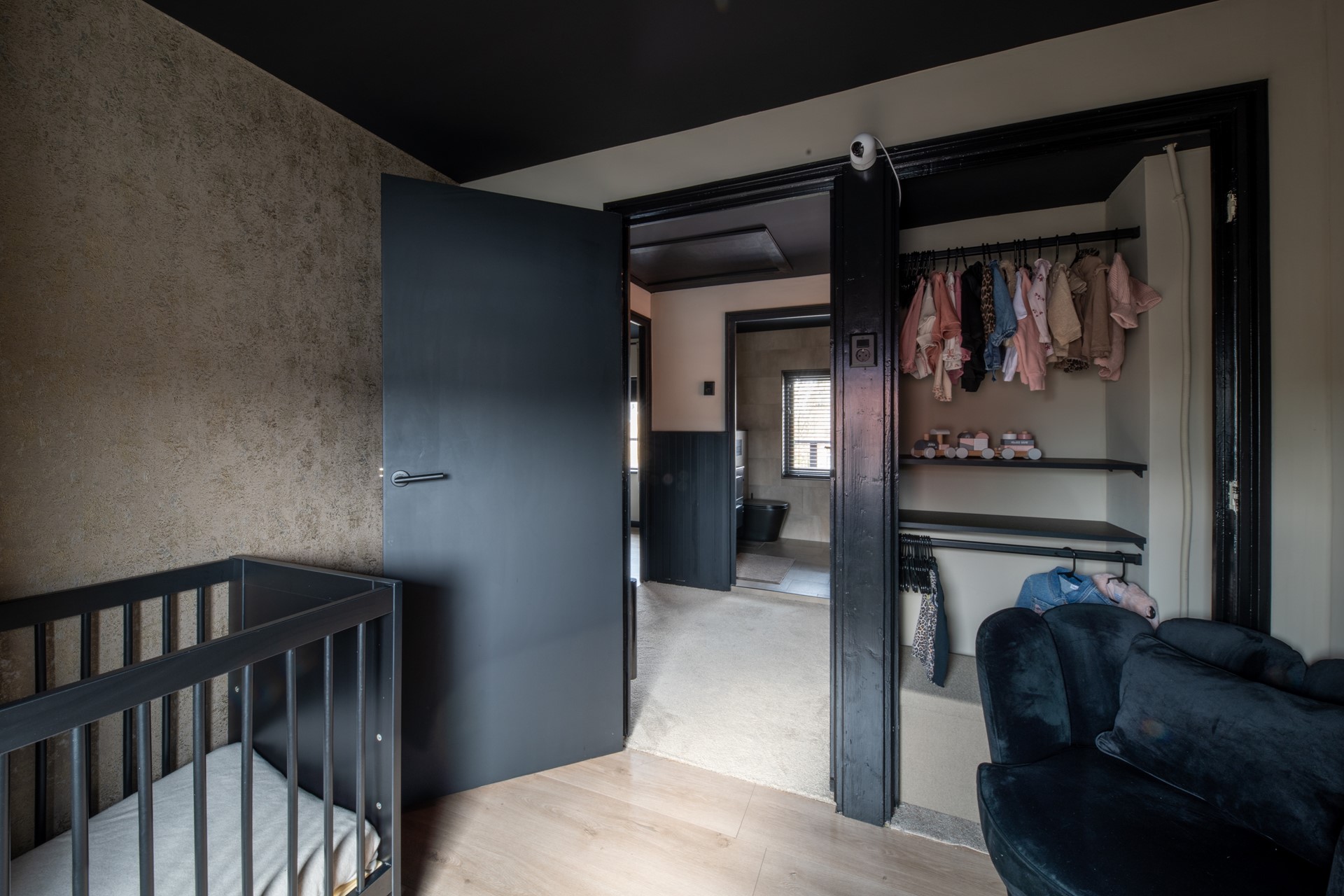 De overloop biedt toegang tot drie slaapkamers. De kamers zijn in dezelfde stijlvolle afwerking doorgetrokken, wat zorgt voor een rustige en verzorgde uitstraling. Daarnaast bevindt zich op deze verdieping de badkamer, welke is uitgerust met een douche, wastafel en een tweede toilet.